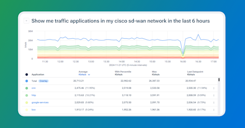 Tip: You can also skip this step and just ask for PostgreSQL traffic right off the bat by asking something like “show me postgresql application traffic in my Cisco SD-WAN network in the last 6 hours.”