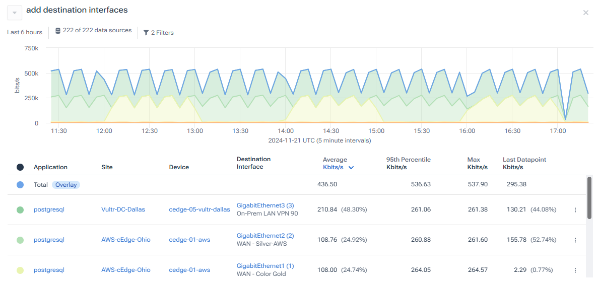 Next, let’s also include destination interfaces in the query to see over which interfaces this traffic goes.