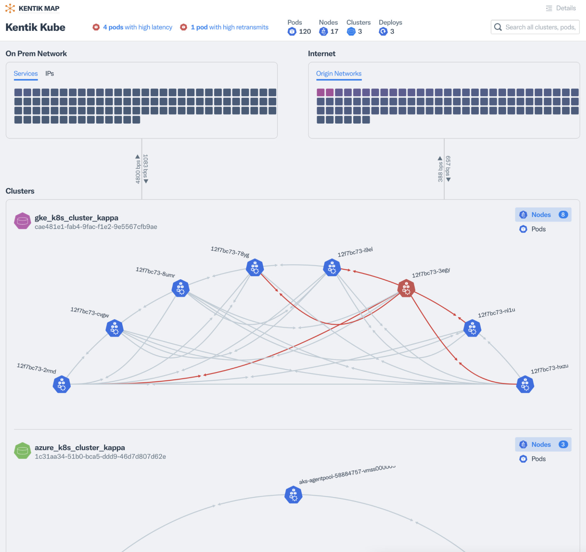 With this launch, Kentik can observe the entire network — on prem, in the cloud, on physical hardware or virtual machines, and anywhere in between. Kentik Kube enables network, infrastructure, platform, and DevOps engineers to gain full visibility of network traffic within the context of their Kubernetes deployments — so they can quickly detect and solve network problems, and surface traffic flowing from pods to external services.