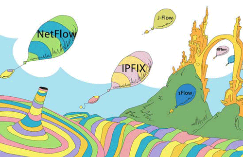 - sFlow: sFlow is used to record statistical, infrastructure, routing, and other information about IP traffic traversing an sFlow-enabled router or switch. Unlike NetFlow, sFlow doesn’t statefully track packets within flows, but is derived instead from packet sampling. Created by InMon Corporation, sFlow is now a multi-vendor protocol that is supported by many vendors such as A10, Alaxala, Alcatel-Lucent, Allied Telesis, Arista, Aruba, Big Switch, Brocade, Cisco, Cumulus Networks, Dell, D-Link, Enterasys, Extreme Networks, F5, Fortinet, Hewlett-Packard, Huawei, IBM, Juniper Networks, NEC, Netgear, and ZTE.