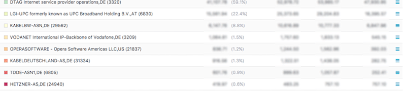 After applying the changes we have an ordered list of the top ASNs, in Germany, that are currently reached via transit, a.k.a a list of the traffic destinations with which it would be most beneficial for us to peer. This is valuable business intelligence that it would be far more difficult to obtain without our new Interface Classification dimensions.