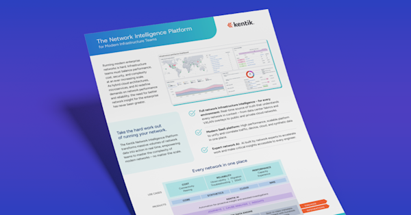 The Kentik Network Intelligence Platform provides real-time network data insights to help teams manage performance, cost, security, and complexity.