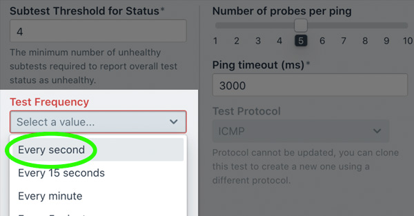 Monitoring network performance is fundamental to assessing digital experience and service quality. Testing frequency is a primary factor in ensuring that synthetic monitoring provides meaningful insight into the network’s reliability and digital experience quality. So, when we designed Kentik Synthetic Monitoring, we made sure that it can support high-frequency tests with sub-minute intervals providing network teams with a tool that can capture what is going on in the network, including subtle degradations.