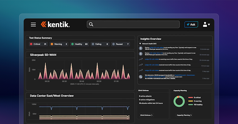 Kentik AI Advisor is a powerful new AI that deeply understands your network, reasons through complex issues, and delivers clear, actionable guidance for designing, operating, and protecting your networks.